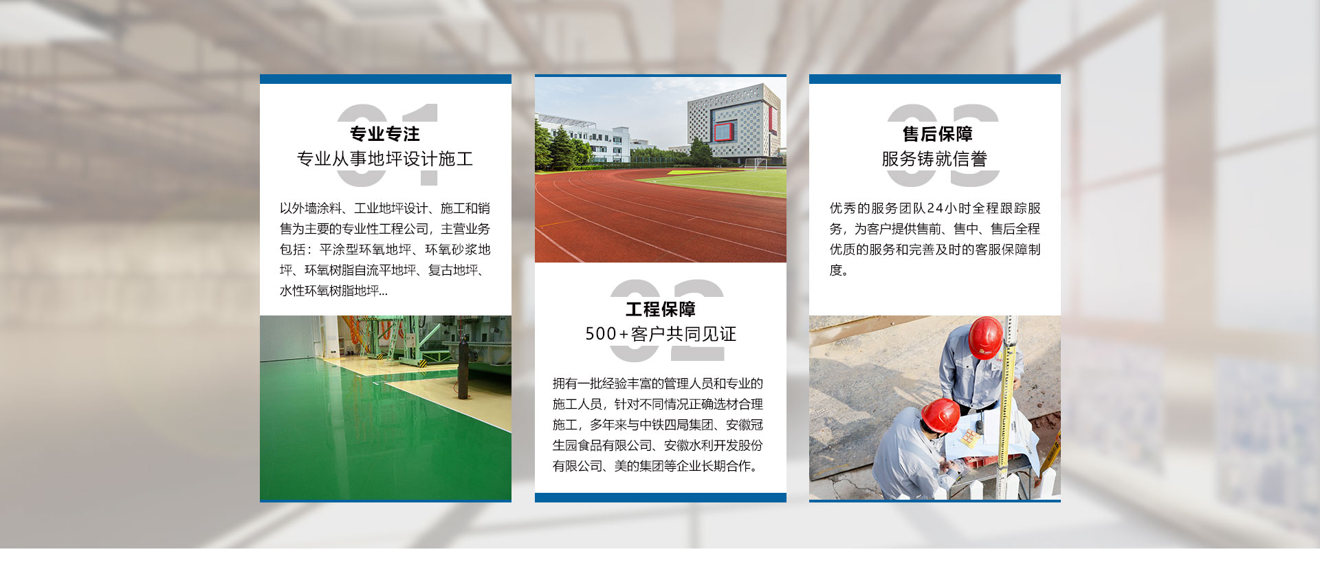 安徽世博裝飾工程有限公司成立于2009年,是一家以外墻涂料、工業地坪設計、施工和銷售為主要的專業性工程公司、是工業地坪施工的專業企業。公司設立了售后服務中心,用戶遍布全國大中小城市,一大批具有標志性的長期合作伙伴?!笆啦┕尽杯h氧地坪工程,受到了越來越多的不同行業用戶的好評及青睞。公司擁有一批經驗豐富的管理人員和專業的施工人員,以保障產品的成功應用,用較小的代價獲得理想的效果,尤其在地坪涂裝方面優勢突出。而且以好的品質管理模式,向客戶提供“獨具魅力”、“性能優異”、“質量穩定”的產品。公司主要產品包括:平涂型環氧地坪、環氧砂漿地坪、環氧樹脂自流平地坪、滾涂型防靜電地坪、自流平防靜電地坪、復古地坪、水性環氧樹脂地坪、彩色透水混凝土地坪、壓花壓模藝術地坪、金剛砂耐磨硬化地坪、混凝土密封固化劑地坪、乙烯基酯重防腐地坪、GEP 標準型地坪、彈性PU運動場地坪、塑膠跑道地坪,PVC橡膠地板、停車場地坪、無震...